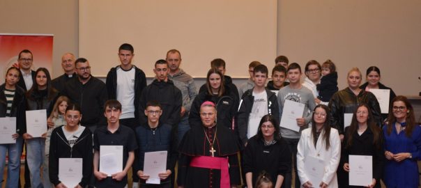 ĐAKOVO (TU) – Đakovačko-osječki nadbiskup metropolit Đuro Hranić je u petak, 14. studenoga 2025. učenicima i studentima uručio odluke o dodjeli financijskih sredstava iz Zaklade „dr. Nikola Dogan“ za školsku odnosno akademsku godinu 2025./2026. Svečani čin upriličen je u Dvorani biskupa Mandića u Središnjoj nadbiskupijskoj i fakultetskoj knjižnici u Đakovu, a uz korisnike Zaklade i njihove roditelje dodjeli su nazočili dr. Drago Tukara, ravnatelj Caritasa Đakovačko-osječke nadbiskupije, Mišo Lukačević, pomoćnik ravnatelja i tajnica Nikolina Ivanda jer je Caritasu povjereno upravljanje Zakladom.